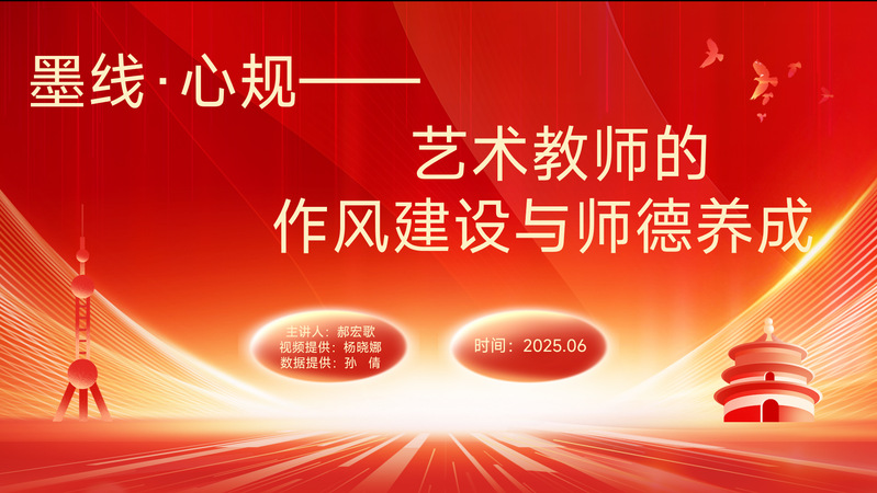 为深入贯彻落实中央八项规定精神,扎实推进教师作风建设与师德养成,在七一建党节来临之际,2025年6月13日,公司教工第二党支部书记郝宏歌以《墨线·心规:艺术教师的作风建设与师德养成》为题,为支部党员教师带来一堂内涵深刻、别开生面的专题党课。