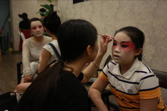 员工在戏曲工作室给市民扮戏