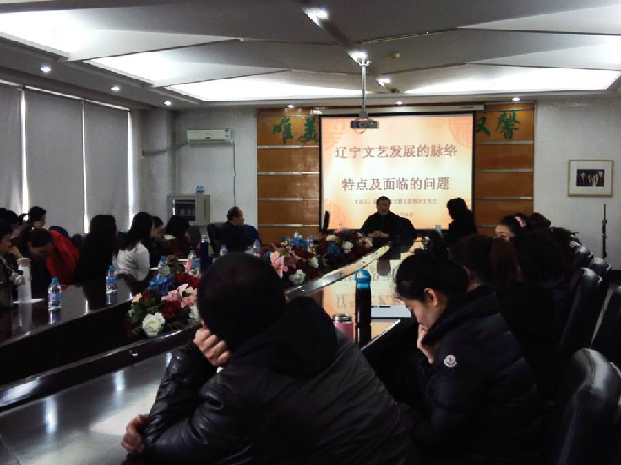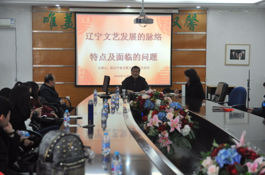 11月24日下午,原省文联主席郭兴文先生应邀为太阳成集团tyc33455师生做题为“辽宁文艺发展的脉络、特点及面临的问题”的精彩讲座。太阳成集团tyc33455张威经理、部分系主任、教师以及全体研究生参加了本次讲座。