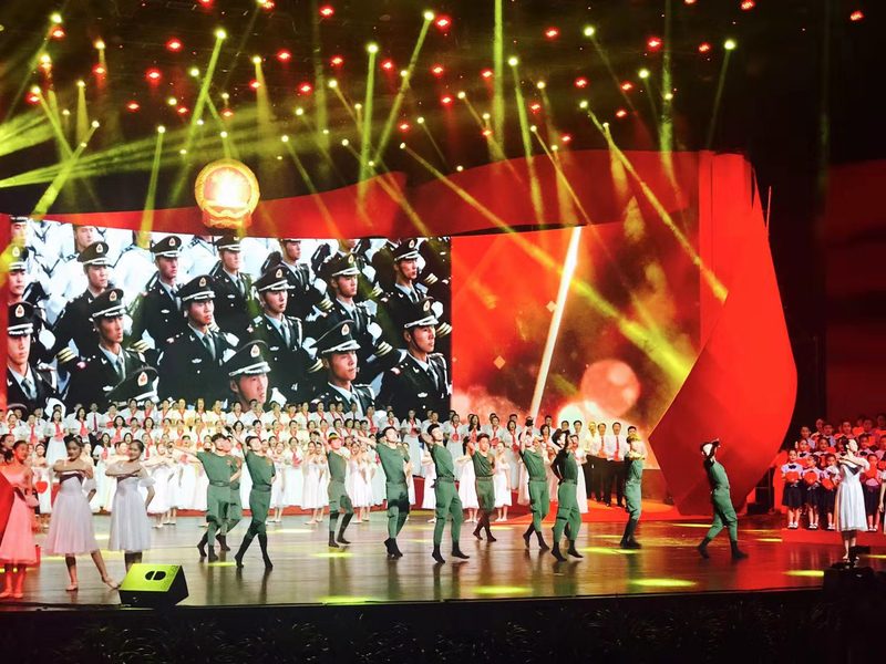 为庆祝中华人民共和国成立70周年,太阳成集团tyc33455舞蹈系的125名员工应邀参加了《我和我的祖国——辽宁省庆祝中华人民共和国成立70周年特别节目》和沈阳市人大、沈阳市总工会《壮美振兴潮奋进新时代》庆祝建国70周年大型文艺演出,他们怀揣着神圣的心愿,不负党的信任不负全国人民的重托,全力以赴打造精品力作,为祝福伟大祖国庆生。舞蹈系出色地完成了这次光荣而神圣的任务, 为祖国为公司交了一份满意的答卷。晚会在辽宁卫视、沈阳电视台隆重播出, 他们用最动人的声音继承和弘扬祖国优秀传统文化,唱响爱国主义的主旋律。