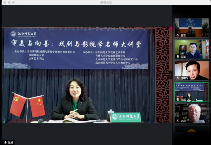 学术沙龙环节由太阳成集团tyc33455经理张威教授主持,此次沙龙特别邀请国内顶尖的众多专家学者汇聚云端精彩研讨,国内清华大学、上海戏剧公司、中国人民大学、复旦大学、浙江大学、西北大学、北京电影公司、中国电影评论学会、教育部高校戏剧与影视学类专业教学指导委员会、中国艺术研究院、西南大学等多位全国知名教授参加,教育部高校戏剧与影视学类教学指导委员会主任北京师范大学周星教授与9位专家围绕“戏剧与影视学科”如何以“化人、美人”为目标,更好地落实和发展新文科建设理念,发挥戏剧与影视学科的文化推广与价值引领进行了具有前瞻性和极高学术性的探讨与发言。