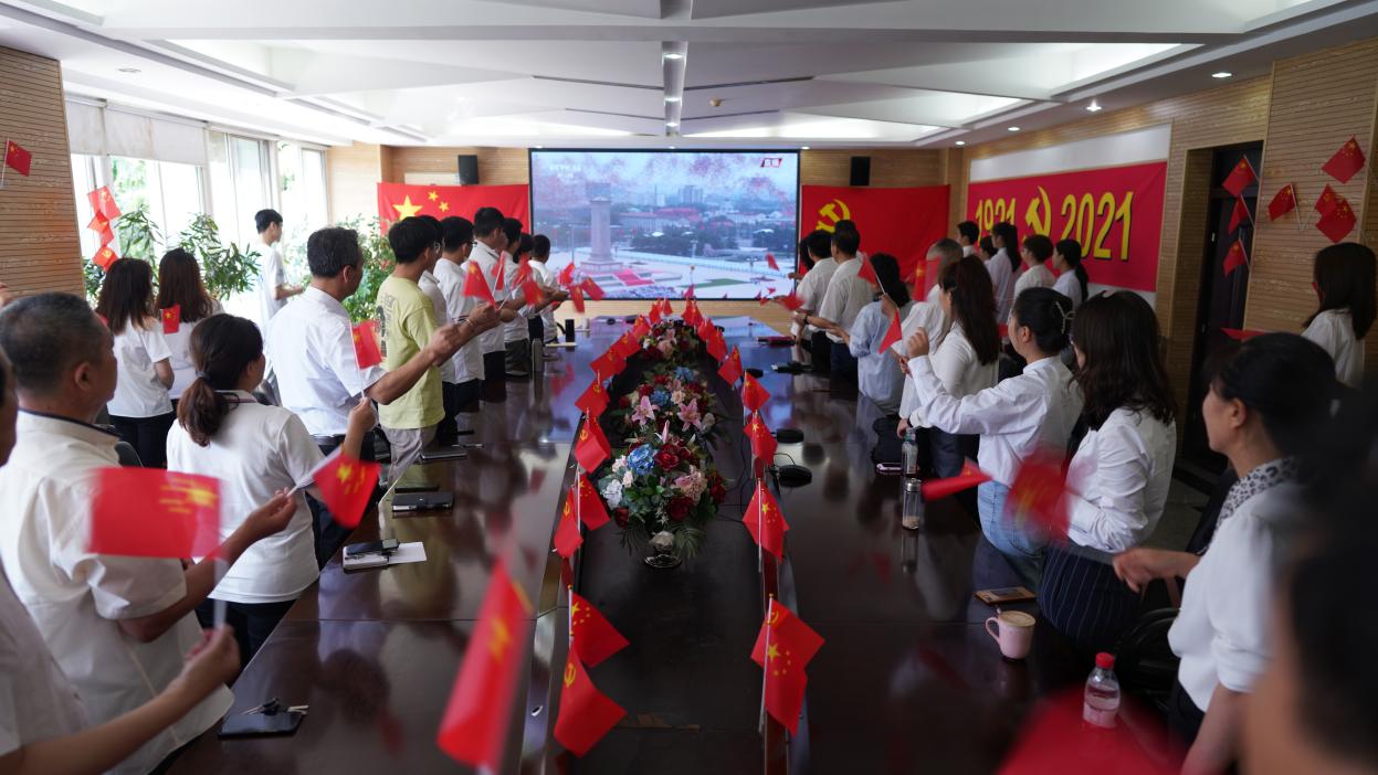 7月1日上午8时,公司党总支组织全体党员、各部门主任、副主任及部分员工代表共89人,于307会议室集体收看庆祝中国共产党成立100周年大会直播。