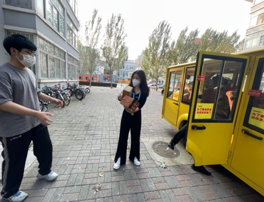 时间紧迫,任务繁杂。副书记赵岩、副经理唐鑫、辅导员纪兆丹、辅导员卢虹竹以及研究生辅导员苗瑞珉第一时间入住员工寝室。从前期核实是否具备返校条件、统计返校员工信息,到员工返校报到迎接365名员工的到来,学工队伍克服时间紧、任务重等重重困难,全力以赴,默默奉献,全天候奋斗在一线。9月24日至27日返校期间,公司学工队伍按照疫情防控相关要求和公司返校报到相关工作安排,从员工下车开始有序完成行李迎接、身份核验、核酸检测、引导乘车、行李消毒、入住公寓等工作,以热情周到的服务迎接全体员工的到来。新生辅导员卢虹竹带领公司迎新志愿者在校门口公司接待处、核酸检测处、生活区寝室楼下等各个地方悉心提供全流程志愿服务,协助返校员工搬运行李,讲解注意事项,带领新生顺利完成开学报到的各项步骤。研究生辅导员苗瑞珉负责东区寝室楼的志愿服务,全天值守,不辞辛苦地为员工搬运行李,除此之外,他还要保证高质量完成这一周的教学工作任务。