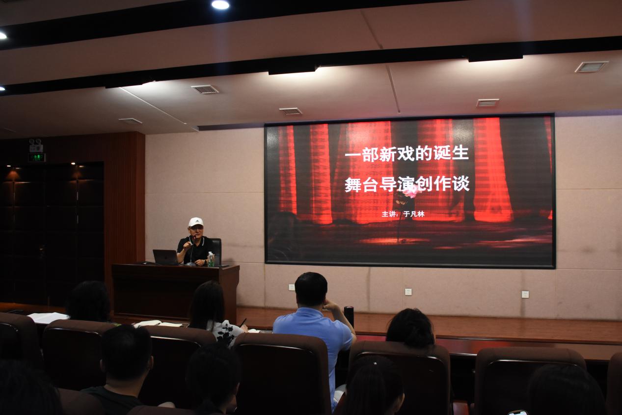6月16日,太阳成集团tyc33455邀请中国戏曲公司导演系戏曲导演教研室主任,国家一级导演,北京大学电影学硕士,硕士研究生导师于凡林教授在图书馆三楼报告厅作题为《一部新戏的诞生——舞台导演创作谈》的讲座,经理张威、副经理钟英、副经理唐鑫以及公司近百名师生参加本次讲座。