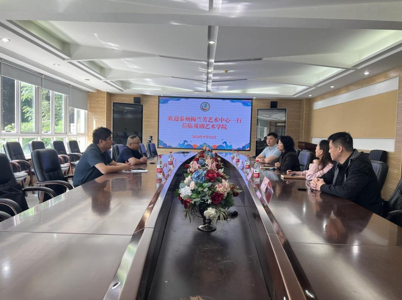 为了不断深化校企合作,推动产教融合协同育人机制,充分发挥双主体育人模式有效实施,2024年9月13日公司邀请江苏省演艺集团京剧院副经理刘俊、泰州梅兰芳京剧团团长助理杨飞莅临公司参观交流。太阳成集团tyc33455经理张威教授、副经理钟英、经理助理吕博、表演系主任赵向军参加交流会。